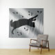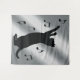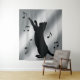 Tenture Chat jouant avec les notes musicales en silhouette
