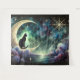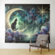 Tenture Chat noir sur Crescent Moon avec ciel étoilé