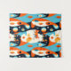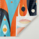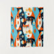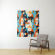 Tapisserie dans un design moderne du milieu du siècle avec deux chats stylisés aux formes audacieuses et géométriques d'orange, turquoise, noir et blanc. motifs Abstraits et formes rétro remplissent l'arrière - plan, lui donnant une ambiance amusante et vintage avec un bord minimaliste.