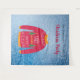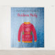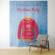 Une tapisserie pour une saison des fêtes amusante et des fêtes de Noël, des dîners. Un fond bleu avec de la neige. Décoré avec un affreux pull de Noël rouge, blanc, orange et vert. Personnalisez et ajoutez le nom de votre famille, lettres noires. Le texte : Fête de Noël est écrit en rouge avec un style de lettre manuscrit moderne. Peut être utilisé comme un panneau de bienvenue, une décoration murale de fête ou comme arrière-plan de photomaton.