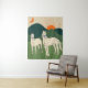 Deux chevaux tachetés se tiennent gracieusement dans une vallée verdoyante, baignée par la chaleur du soleil levant. Des collines et un croissant de lune ajoutent une atmosphère sereine et rêveuse à la scène. Cette oeuvre minimaliste mais vibrante capture la beauté de la nature et l'esprit libre des chevaux.