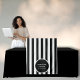Elevate your business presence with our black and white striped business banner. Perfect for branding at vendor events, this sleek banner is a must-have for creating a lasting first impression. Features a background pattern of wide black and white vertical stripes with a round black frame that features your business name and tagline in elegant white text. This neutral event table runner for pop-ups makes a statement with your first interaction and speaks volumes about your brands' dedication to quality and style.
