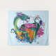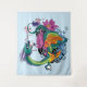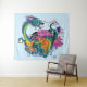Un dragon d'eau chinois vert et violet avec un poisson koi orange, des fleurs de lotus, des fleurs de cerisiers sur fond de bleu