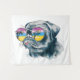 Caractéristiques de conception ce un carlin regardant par des lunettes de soleil une scène tropicale.