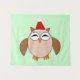 Cette superbe tapisserie présente un drôle de dessin d'une chouette de Noël aux yeux somnolents, un petit bec orange et de mignons petits pieds oranges. Le hibou est brun avec un ventre crème et porte un chapeau de Père Noël rouge et blanc prêt pour Noël.