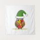 Illustration d'une chouette d'elfe timide avec chapeau de santa vert et cadeau rouge avec ruban jaune. Ce dessin animé mignon est une idée cadeau pour les amateurs de hibou, les amateurs d'oiseaux, et les amateurs d'imaginaires ou de films magiques. Es-tu excité de recevoir ton cadeau à Noël ?