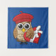 Tenture Chouette mignonne avec béret rouge et boîte cardia