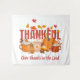 Préparez-vous à la saison de Thanksgiving avec cette tapisserie REMERCIEMENTS Joyeux Thanksgiving avec TEXTE PERSONNALISABLE. Le design montre un ensemble de friandises à la citrouille et de feuilles d'automne avec REMERCIEMENTS en typographie gras. Sous le texte chrétien RENDEZ GRÂCE AU SEIGNEUR est personnalisable pour que vous puissiez le personnaliser avec votre propre texte, comme le nom de votre famille ou de votre église. Des cadeaux et des fournitures de fête assortis sont disponibles.