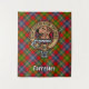 Clan Forrester écusson badge entouré d'une sangle et boucle sur l'arrière - plan tartan. Texte personnalisé.