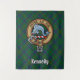Clan Kennedy crête badge entouré d'une sangle et boucle sur l'arrière - plan tartan. Texte personnalisé.