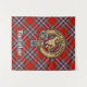 Clan MacFarlane écusson de crête entourée d'une sangle et boucle sur l'arrière - plan tartan. Texte personnalisé.