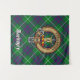 Clan MacIntyre badge crête entouré d'une sangle et boucle sur l'arrière - plan tartan. Texte personnalisé.