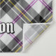 Clan MacPherson crête badge entouré d'une sangle et boucle sur l'arrière - plan écossais habillé. Texte personnalisé.
