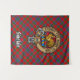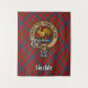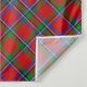 Clan Sinclair badge de crête entouré d'une courroie et boucle sur l'arrière - plan tartan rouge. Texte personnalisé.
