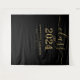 Cette tapisserie minimaliste et moderne de graduation, cabine photo/accessoires, présente un arrière - plan noir classique avec les mots "classe de 2024" dans l'élégante police de caractères or stylisée. Nom de la Personnaliser et nom de l'école de votre diplômé. Facile à customiser.