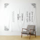 With this Custom Wedding Tapestry, you can create a gorgeous focal point that captures the essence of your special day. This large-scale piece makes a strong statement of love and style whether it is draped behind your sweetheart table, used as a backdrop for a romantic ceremony, or used as the ideal photo booth station. Your personalized quote—be it a song line, a passage from a vow, or a significant phrase—is prominently displayed at the top of the typographically driven, flawlessly arranged design. Your names and wedding date serve as the design's anchors below. Each word is presented in a sophisticated, elegant serif font, guaranteeing that the design will always be classic, readable, and stylish. It serves as a backdrop for your memories and a memento that you can show off in your house, making it more than just a decoration.