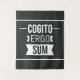Cette tapisserie noire frappante présente l'expression latine intemporelle "Cogito, ergo sum" (je pense, par conséquent je suis) en typographie blanche audacieuse, créant un point focal puissant et intellectuel pour n'importe quel espace. Idéal pour les amateurs de philosophie, les penseurs profonds, les sceptiques, les étudiants et les enseignants, cette tapisserie apporte une touche de sagesse et d'élégance à votre maison ou à votre espace d'études. Qu'il soit drapé sur un mur, utilisé comme couvre-lit, ou accroché comme pièce de déclaration unique, ce design mêle la philosophie latine classique à l'esthétique moderne, stimulant la conversation et la réflexion.