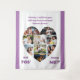 Fond de toile de photo "Veux-tu m'épouser ?" que vous pouvez personnaliser avec 9 de vos photos préférées. Le modèle de photo est configuré pour afficher vos images dans un collage de photos en forme de cœur, composé de photos en portrait et en paysage. "Veux-tu m'épouser ?" est écrit en caractères gras rétro dans des tons lavande lilas violet, que vous pouvez modifier si vous le souhaitez. Vous pouvez également ajouter votre texte personnalisé en haut, tel que "Je t'aimerai de tout mon cœur et de mon âme pour toujours et à jamais".