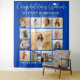 Ajoutez une touche personnalisée élégante aux décorations de la fête de remise des diplômes de l'université ou du secondaire avec un cadre de collage photo personnalisé. Les images et toutes les formulations de ce modèle sont simples à personnaliser, et les couleurs sont faciles à changer avec l'outil de design Zazzle. Le design royal bleu et blanc présente une calligraphie manuscrite branchée, une typographie moderne et chic minimaliste, et toutes les photos préférées de votre choix, telles que des images de haut niveau ou des images de la cérémonie de début. Ce grand panneau de remise des diplômes peut être accroché sur un mur pour accueillir les invités à la célébration ou utilisé comme fond de cabine photo amusant et élégant. Félicitations au diplômé !