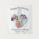 Célébrez n'importe quel anniversaire de mariage avec un présentoir de photos personnalisé, un décor de fond pour bannière de fête ou une tapisserie souvenir comportant 3 photos en forme de cœur et votre texte personnalisé dans le style de police, les couleurs et la couleur de fond de votre choix. L'exemple montre "Joyeux Anniversaire", le nombre d'années de mariage, les noms et "UNIS DEPUIS DATE DE MARIAGE" en argent sur fond blanc pour un 25e anniversaire de mariage. ASSISTANCE : Pour obtenir de l'aide concernant la modification ou la personnalisation de la conception, le redimensionnement ou le transfert du design sur un autre produit, contactez le concepteur AVANT DE COMMANDER via l'onglet MESSAGE de discussion Zazzle ou par e-mail à makeitaboutyoustore@gmail.com.