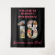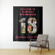 Créez votre propre tapisserie de collage photo pour une fête d'anniversaire de 18 ans. Ces tentures murales font un excellent fond, un panneau de bienvenue ou un photomaton. Le modèle est configuré pour que vous puissiez ajouter vos propres photographies, qui forment automatiquement le nombre 18. Vous pouvez également modifier toutes les mentions. La mention exemple indique "Bienvenue à [nom] pour son 18e anniversaire" en haut et "Génial depuis 20xx !" en lettrage rose. Veuillez parcourir notre magasin pour trouver des cadeaux et des cartes d'anniversaire de 18 ans coordonnés.