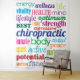 Cette tapisserie présente des mots de motivation de différentes couleurs et typographie pour décrire la chiropratique et un mode de vie sain.