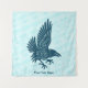 Une image simple et bleue d'un corbeau vivant (Corvus corax) de style norse-celtique, superposée à une image arrière - plan enneigée. Customisez en ajoutant votre propre texte.
