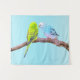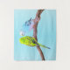 Cette Tapisserie est composée de deux mignonnes perruques en vert et bleu, installées sur une branche. Peinture numérique sur arrière - plan bleu pâle. Beau pour tous les amateurs d'oiseaux ! Décor mural unique, également une idée cadeau.