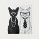Caractéristiques de conception ce qu'un chat femelle noir s'est habillées en collier de perle et le chat masculin blanc s'est habillé dans la cravate pointillée.