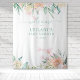 Tapisserie élégante avec aquarelle florale de couleurs pastel. Ce design présente Bienvenue dans une police manuscrite de couleur vert menthe.