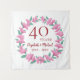 Cette élégante tapisserie pour la fête des 40 ans de mariage présente une délicate couronne de verdure florale faite de fleurs roses et de feuilles vertes. Le fond peut être facilement personnalisé avec vos informations spéciales d'anniversaire de rubis. Si vous avez besoin d'aide pour la personnalisation du texte, n'hésitez pas à me contacter via Zazzle, s'il vous plaît. Les fournitures de fête et la papeterie assorties sont disponibles dans la collection "40e anniversaire de mariage fleurs roses".
