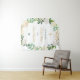 Ce panneau mural tapisserie de baptême ou de première communion élégant comporte un lettrage personnalisé élégant qui peut être personnalisé avec Dieu bénisse et les noms de vos enfants, accentué d'une croix dorée et encadré par un beau design de couronne de fleurs aquarelles avec des roses peintes, des fleurs de renoncule et de la verdure dans des tons neutres de blanc, crème, or, or rose et vert.