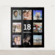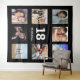 Pour un 18e anniversaire, célébrant sa vie avec un collage de 8 de vos photos de ses amis, famille, intérêts ou animaux de compagnie. Personnalisez et l'âge 18 et une date. Date de naissance ou date de la fête d'anniversaire. Lettres blanches. Une couleur de fond noir classique. Utiliser comme décoration murale de fête, bannière de bienvenue et comme photobooth, fond de photo.