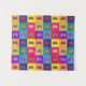 Tapisserie de style pop art clair et coloré. Des blocs de couleurs vives remplis d'images de crabe colorées.