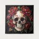 La tapisserie présente une aquarelle goth d'un crâne humain entouré de roses rouges contre un arrière - plan noir. Le crâne mouillant a des marques rouges dessus. Cet art sombre morbide est parfait pour n'importe quel moment, mais surtout pour la saison éffrayante d'Halloween.