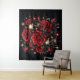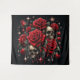 Tenture Crânes d'or et roses rouges étincelante gothique