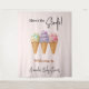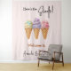 Célébrez la journée spéciale avec Sweet Ice Cream Summer Here Scoop Baby shower Affiche de bienvenue Tapestry! Notre décor de baby shower customisé sur le thème de la crème glacée présente des éléments bohèmes uniques comme des boules d'aquarelle modernes de crème glacée. Parfait pour une fête d'été à thème bohème en plein air pour future mère-à-être, faites sa fête mémorable avec un look unique et moderne qu'elle aimera!