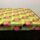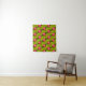 L'image florale imprimée sur la tapisserie est d'une photo de crochet original travail conçu à la main et Copyright © par le concepteur publié Delores Chamblin. L'image d'une section d'un casquette artisanal unique, feuilles verts et fleur jaune avec bouton nacré est répétée sur la tapisserie. La teinte orange est un filtre numérique.