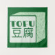 Illustration d'un cube de tofu dessiné en vert clair. Le texte japonais sur le tofu dit tofu.