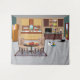 Ajoutez une touche de charme félin à votre mur avec notre magnifique tapisserie de cuisine. Cette tapisserie captivante présente un dessin animé coloré représentant une cuisine, ornée de vaisselle, d'appareils électroménagers et d'une table remplie de fruits délicieux. La tapisserie présente également deux adorables chatons, l'un se nourrissant avec bonheur de son plat tandis que l'autre sort curieusement de la porte de la cuisine. Avec son design unique et adorable, cette tapisserie est le cadeau parfait pour tous ceux qui aiment les chats et veulent apporter une atmosphère ludique à leur espace.