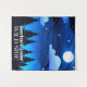 Tapisserie dans un imaginaire sauvage illustration du ciel nocturne, avec la lune et les étoiles au-dessus des pins, et la légende "nourrissez votre côté sauvage"