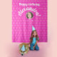 Cette jolie tapisserie girly est ornée d'un arrière - plan rose vif, orné d'un motif d'arc ludique et coloré, créant une atmosphère festive et amusante. Dans le centre, il y a un espace personnalisable où vous pouvez ajouter la photo de la fille d'anniversaire pour le rendre spécial pour la célébration. Le design est complété par une typographie blanche moderne et élégante qui dit "Joyeux anniversaire" suivi du nom de la fille d'anniversaire. Sous la photo, la date est affichée dans un script simple et classique, ajoutant une touche personnelle. C’est la décoration parfaite pour accueillir les invités et donner le ton pour une fête d’anniversaire élégante et mémorable !
