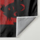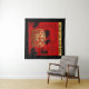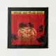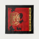 Dans un carré se trouvent 5 rats noirs, deux perchés sur une forme dorée à l'intérieur de laquelle se trouve la sixième souris avec idéogramme. Derrière la scène, il y a un fond rouge sur lequel des lettres décoratives et ornées forment les mots : ANNÉE DU RAT. Dessin sur tapisserie murale carrée. Parfait pour le Nouvel An chinois du Rat ou l'anniversaire (personnes nées dans l'Année du Rat).