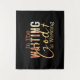 La tapisserie représente un simple script d'or et de blanc sur un arrière - plan noir. Il comporte une croix et une citation chrétienne inspirante, "Dans l'attente, Dieu travaille."