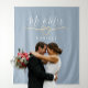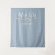 Élégant, moderne, minimaliste, décor de fond de mariage bleu poussiéreux de M. et Mme avec cœur de corde dorée.