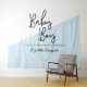 Simple et moderne pour la baby shower de la future maman stylée. Couleurs bleue et blanche avec les mots "Baby Boy". Personnalisez et adaptez ce panneau de bienvenue qui fait également office de toile de fond pour les photos (photobooth). Cette toile de fond de baby shower en bleu facile à personnaliser est parfaite pour la fête.