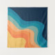 Ondes de style rétro illustration motif géométrique avec décor rayures jaunes, orange, bleues, bleu marine et turquoise