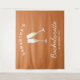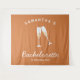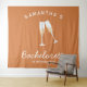 tapisserie personnalisée pour enterrement de vie de jeune fille rétro en terracotta et blanc avec verres à champagne est parfaite comme toile de fond pour photos de fête d'enterrement de vie de jeune fille. Célébrez votre douche nuptiale avec style avec le thème parfait de fête au champagne en terracotta et blanc, le thème idéal pour la mariée nostalgique vintage des années 70 et ses demoiselles d'honneur.