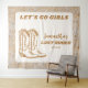 tapisserie personnalisée sur le thème de la cowgirl de l'ouest pour l'enterrement de vie de jeune fille en cuir de vache doré avec des bottes de cowboy est parfaite comme toile de fond pour les photos de l'enterrement de vie de jeune fille. Personnalisé avec votre nom et la devise "dernier rodéo". Célébrez votre enterrement de vie de jeune fille avec style avec le thème parfait de la fête country western, le thème parfait pour l'amoureuse des chevaux, le thème vintage de la cowgirl de l'Ouest sauvage et ses demoiselles d'honneur.