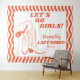 Allons les filles, tapisserie personnalisée de thème de cowgirl western pour enterrement de vie de jeune fille avec motif à rayures ondulées terracotta et blanc avec des bottes de cowboy et un chapeau de cowboy est parfaite comme toile de fond pour photos de fête de bachelorette. Personnalisé avec votre nom et le slogan "dernier rodéo". Célébrez votre douche nuptiale avec style avec le thème parfait de fête western country rétro, le thème parfait pour l'amoureux des chevaux, thème de cowgirl mariée vintage de Wild West et ses demoiselles d'honneur.